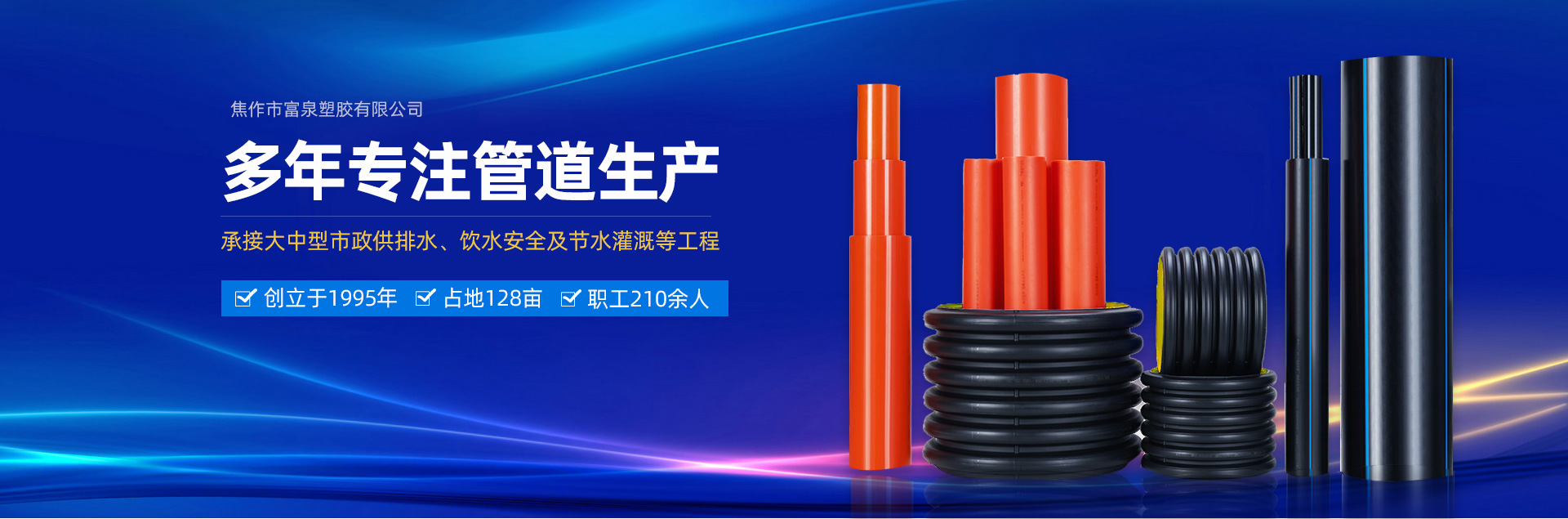 - 焦作市富泉塑胶有限公司,创立于1995年,是一家集研发、设计、生产、销售为一体的大型管材企业。公司位于太极故里、黄河之滨一一河南焦作温县。公司占地128亩,现有职工210余人,其中具有中技术职称的19人。生产、检验设备58台(套),包括PVC实壁管生产线11套、PE实壁管生产线12套、HDPE双壁波纹管生产线6套、PVC双壁波纹管生产线5套,检验设备14台(套)。主要产品有:Φ20mm-630mm、各种压力规格的PVCU、PVC-M、PE给水管材,PVC-U节水灌溉管材,HDPE燃气和矿用管材,DN200-800mm的HDPE、PVC双壁波纹管及各种喷灌、滴灌工程材料。承接大中型市政供排水、饮水安全及节水灌溉等工程。 富泉塑胶公司重视产品的质量、安全、环保和节能,在同行业中率先完成了“新华节水产品认证”,全方面通过ISO9001:2008国际质量管理体系、IS014001:2004环境管理体系和OHSAS18001职业健康安全管理体系的一体化导入,并建立起规范的现代企业管理体系。公司以“质量”为先导,采用质量跟踪、多环节把关的方法,组建具有行业水准的企业技术检测中心,常年委托水利部节水灌溉设备检测中心、河南省产品质量监督检验院对产品跟踪检测,并由中国人民保险公司承保产品质量。公司连续多年被河南省水利厅确定为“安全饮水设备、节水灌溉设备”定点生产企业,并获得“中国名优产品”“质量、服务、信誉AAA企业”“河南省**产品”“河南省水利企业”“河南省守合同、重信用企业”等荣誉称号?! 「蝗芙汗炯岢帧坝没稀钡姆窭砟睿て谝岳矗矫婀刈⒖突Ъ壑?,不断提升服务水平。服务队伍常年为客户的产品设计、施工、安装提供合理的方案和全程细致、周到、**、快捷的技术服务。公司自成立以来,一直坚持以人为本的宗旨,塑造企业形象,并致力于新产品的开发,凭借雄厚的技术开发能力,先进的工艺制造流程,严格的质量管理保证体系,优良的售后服务网络,已成为河南省大的饮水、灌溉及排水管材设备制造商。产品畅销全国,而且还以公司雄厚的综合实力在业界中占据着重要的地位。